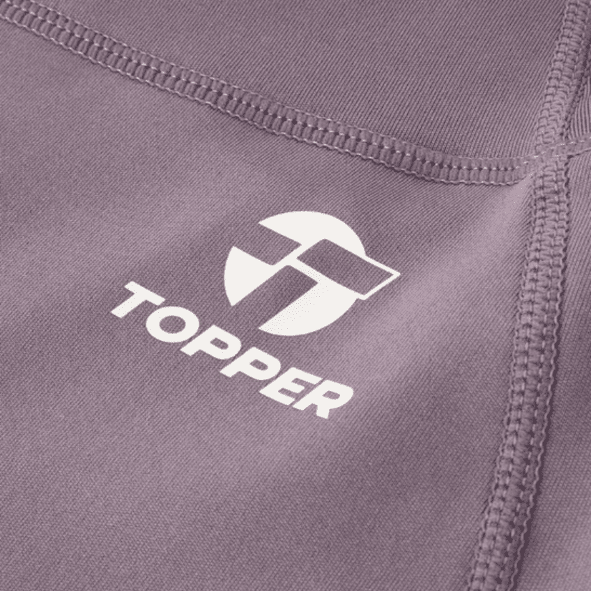 Calza Topper larga 7/8 con cintura ancha en la misma tela. Tiro alto. Recortes curvos en los laterales desde la cintura hasta el gemélo. Bolsillo en el recorte derecho. Isologo en transfer en cadera. Isotipo en el gemelo. Tela: Interlock con elastano – Punto – 92% Poliéster / 8% Elastano
