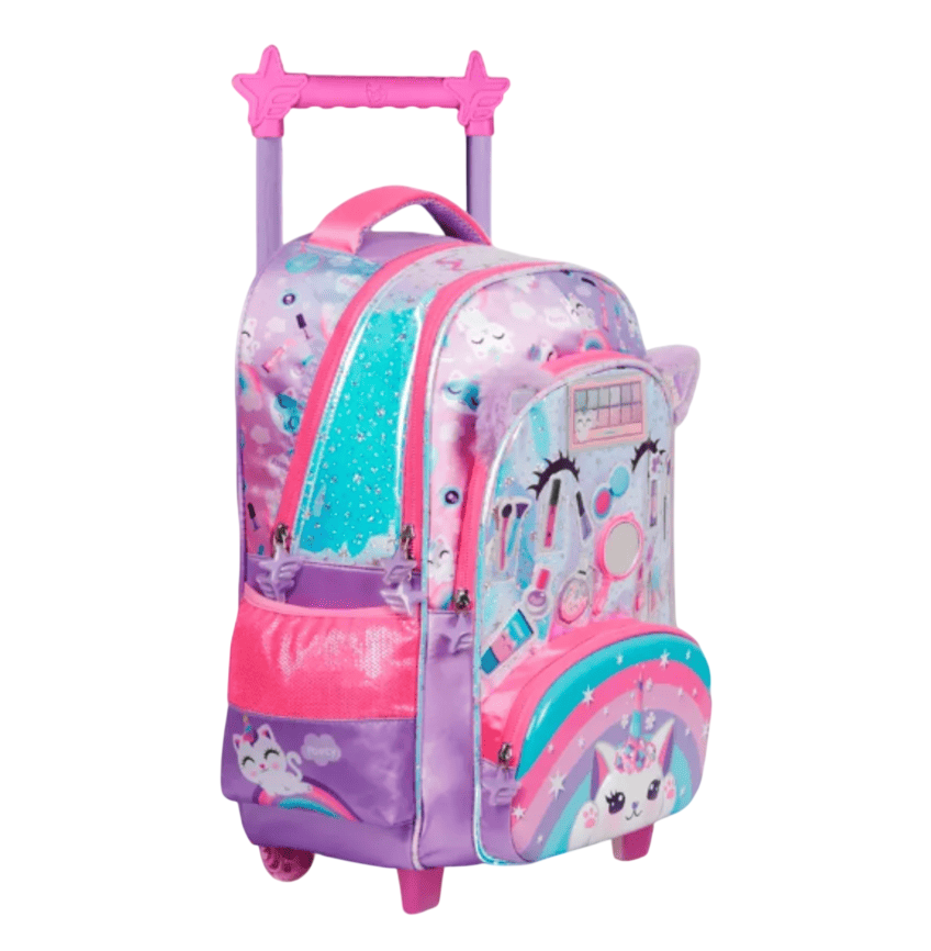 Práctica y original, esta mochila footy con carro y luces led es ideal para el día a día. Cuenta con tres compartimientos, bolsillos laterales y un bolsillo frontal con diseño termoformado. Fabricada con material holográfico y apliques móviles, incluye tiras reforzadas y manija de agarre para mayor comodidad.