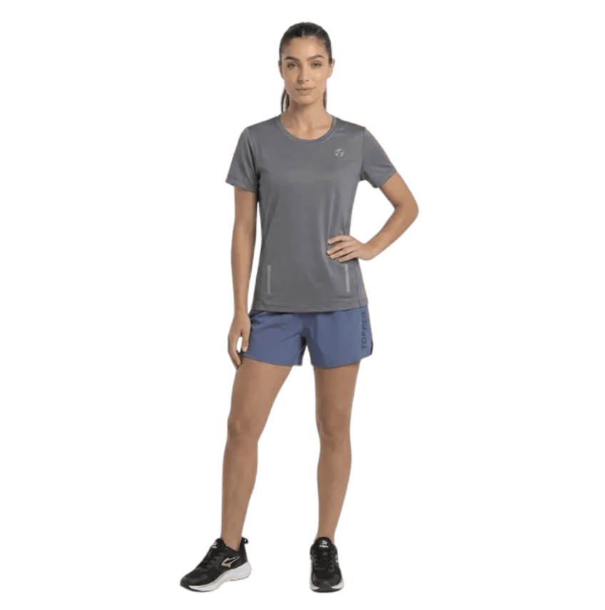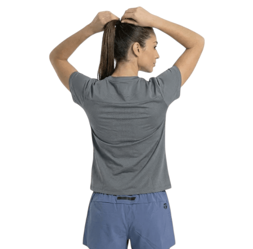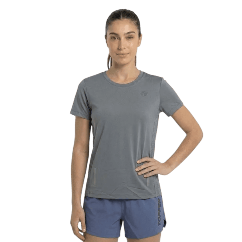 Remera manga corta Topper con calado laser en canesú y combinación de mesh en espalda. Estampa e isotipo reflectivos en calidad transfer de alta densidad. Tela: Punto jersey soft frio con mesh equivalente – Punto – 87% Poliamida / 13% Elastano